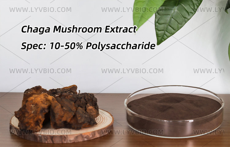 We supply Chaga Mushroom Extract powder with a minimum purity of 30% polysaccharide.